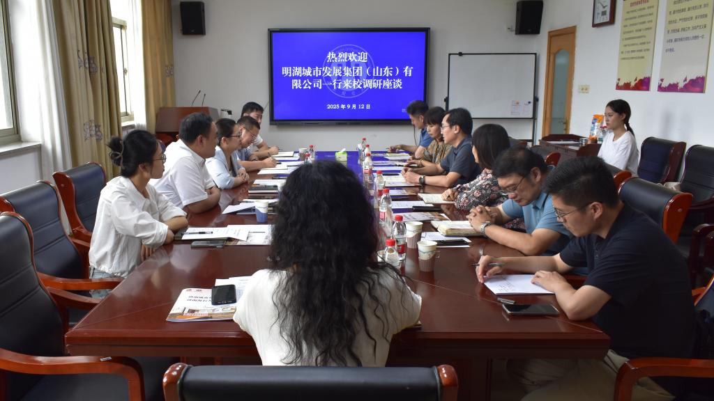 王敬政介绍了学校学科特色及人才培养方向,强调双方在资源整合与人才交流方面的合作潜力,希望校企双方充分发挥资源优势,在课题研究、成果转化、学生就业实习等方面深化合作。赵晓静详细介绍了明湖城市发展集团(山东)有限公司的基本情况,对母校发展成就以及双方前期沟通成效给予高度评价,表达了对未来双方合作共赢的期待。
