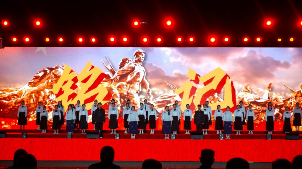 节目创新融合合唱、朗诵与舞蹈三种艺术形式,展现了财税学子对革命先辈的深切缅怀和对时代使命的深刻理解。学子们深情嘹亮的歌声,传递出炽热的爱国情怀,展现了新时代财税青年昂扬向上的精神风貌;双人对话朗诵通过跨越时空的独特视角,搭建起当代青年与革命先辈的情感纽带,让红色精神在传承中焕发新的时代光芒;舞蹈演员以刚柔并济的舞姿,呈现了从战火纷飞的峥嵘岁月到国泰民安的和平年代的时代变迁。节目尾声,全体演员齐声宣誓“山河无恙,吾辈自强”,铿锵誓言响彻全场,将现场气氛推向高潮,也让红色信仰与时代责任深深植根于每位观众心中。