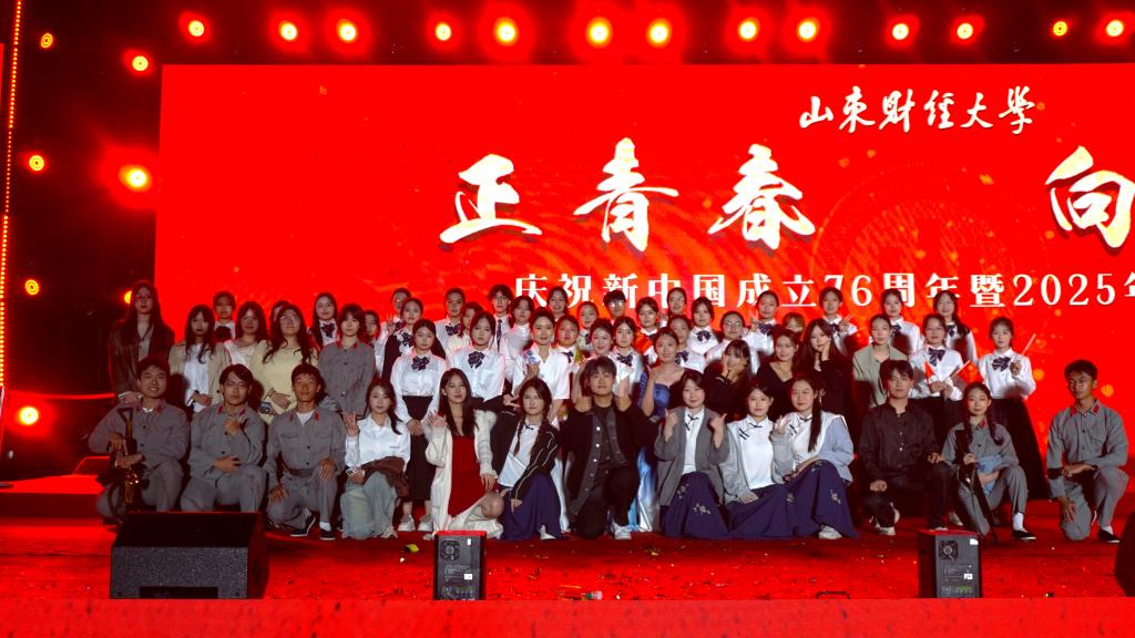 9月20日,太阳成tyc9728集团“正青春 向未来”庆祝新中国成立76周年暨2025年迎新晚会于章丘校区东操场隆重举行。我院积极响应学校号召,精心筹备的歌舞诵节目《铭记》,以其独特的艺术形式和深刻的思想内涵,为晚会增添了一抹亮丽的财税风采。