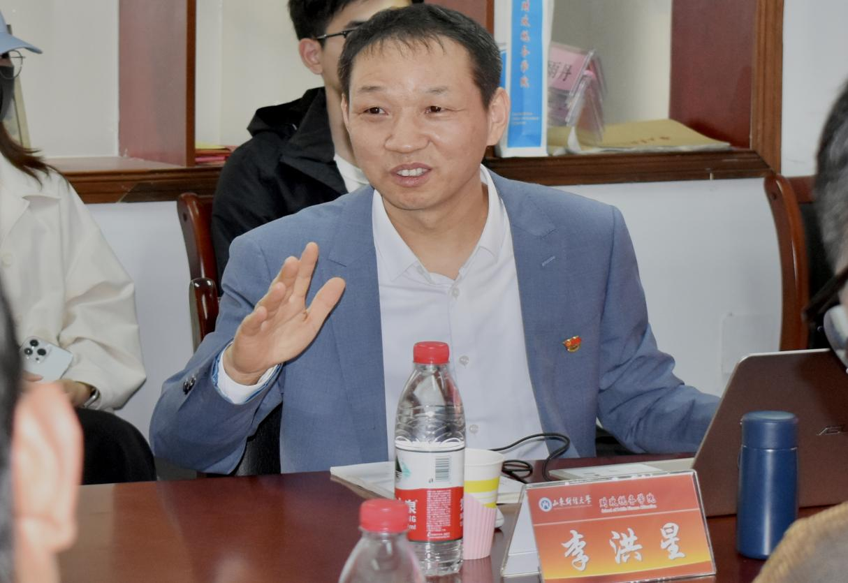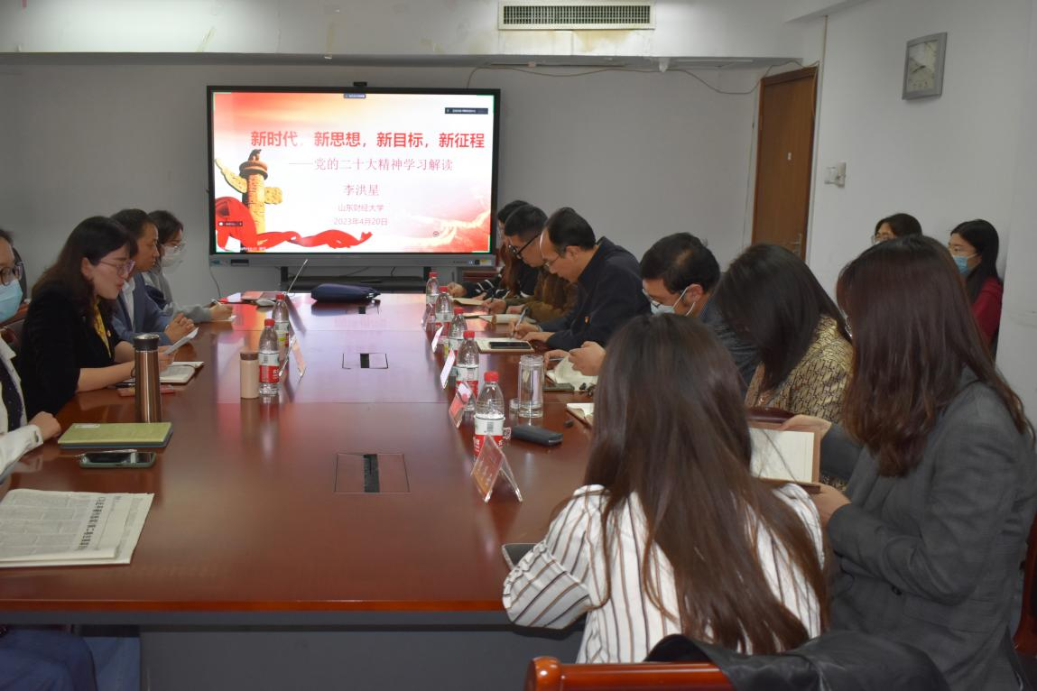 为认真推动学习贯彻习近平新时代中国特色社会主义思想主题教育走深走实,4月20日下午,太阳集团网tyc9728特邀马克思主义学院李洪星教授来我院作党的二十大会议精神专题辅导报告,报告题为“新时代,新思想,新目标,新征程”。太阳集团网tyc9728党委书记刘波,院长李森,党委副书记滕晖,副院长郭健,全院师生共同聆听了此次辅导报告。报告会由滕晖主持。本次辅导报告采用线上线下相结合的方式,舜耕校区816会议室为主会场,圣井校区7313会议室为分会场,其他师生通过腾讯会议收听收看。