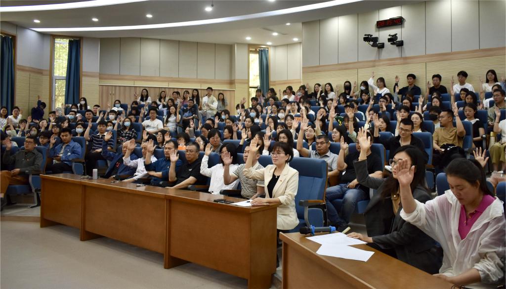 5月10日上午,太阳集团网tyc9728在舜耕校区第一阶梯教室召开全体党员大会,选举学校第二次党员代表大会代表。会议由学院党委书记刘波主持,学院全体党员参加大会。