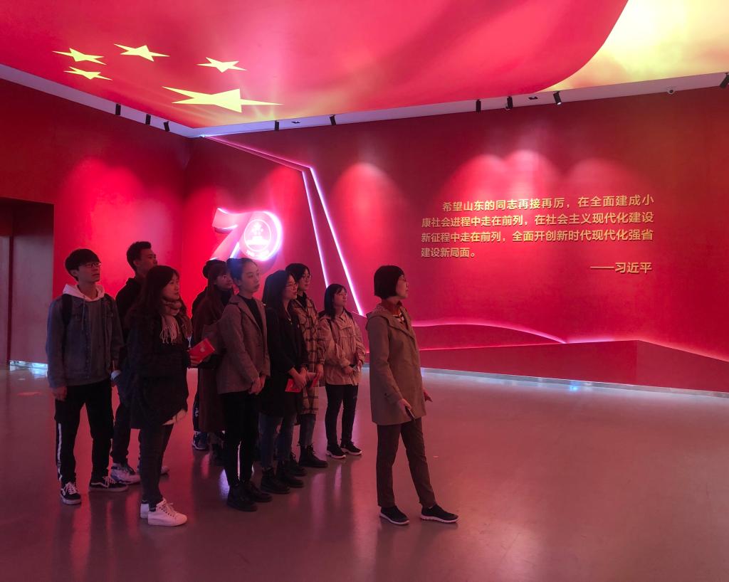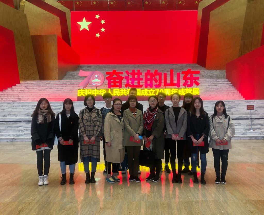 10月25日,我院学生第四党支部组织参观了省博物馆“奋进的山东—庆祝中华人民共和国成立70周年成就展”。学院党委副书记梅丽萍、学生第四党支部书记马静、学生第四党支部副书记、学工办主任郭滨滨以及第四党支部全体学生党员参与了此次活动。