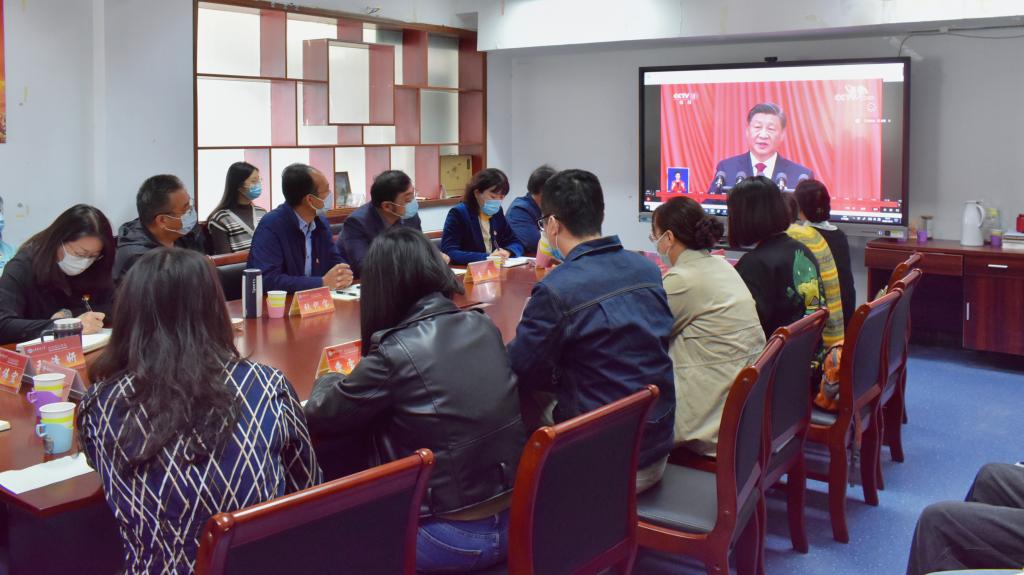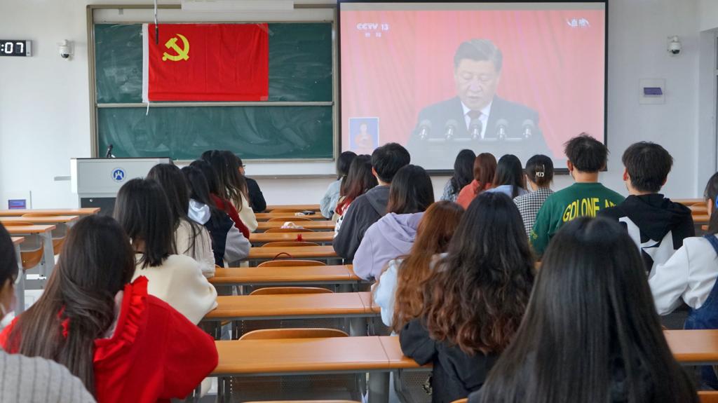 10月16日上午10时,中国共产党第二十次全国代表大会于北京人民大会堂隆重开幕,习近平总书记代表第十九届中央委员会向大会作报告。根据学校统一安排,太阳集团网tyc9728党委书记刘波,院长李森,党委副书记张代宝、滕晖,副院长郭健、赵宝廷,全体党支部书记,教师党员代表和学生党员代表分别在舜耕校区816会议室和圣井校区7322教室集中收听收看开幕会盛况。