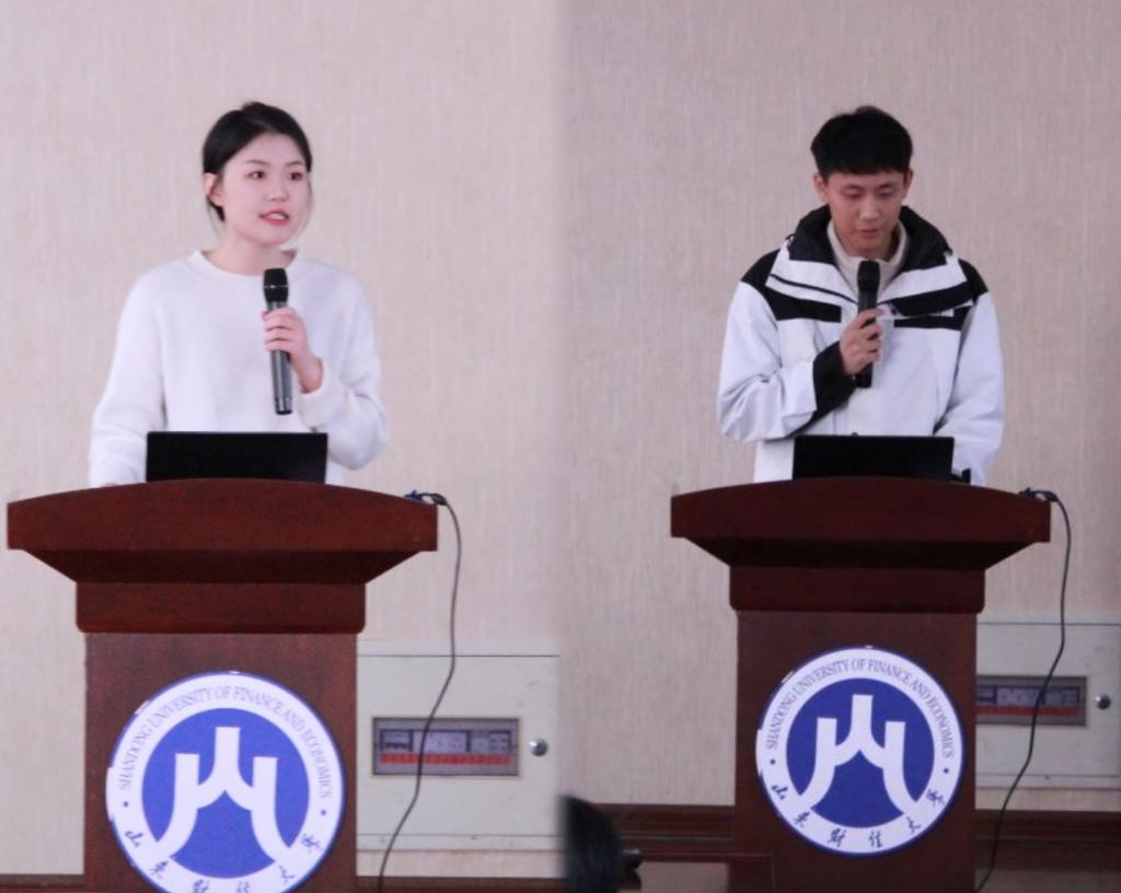 程佳、李子云分别宣读了2023级主要班委名单和2023届学生会助理名单。随后学生会主席张娜及学生干部代表杜祥瑞分别发言。张娜根据自身三年的学生会工作经历对学生干部提出建议,并承诺新一届学生会将会严格加强自我建设,尽职责、行使命,做好本职工作。杜祥瑞则分享了对大学生活的感受和成长,鼓励同学们保持饱满热情,虚心学习,共同创造学院美好未来。